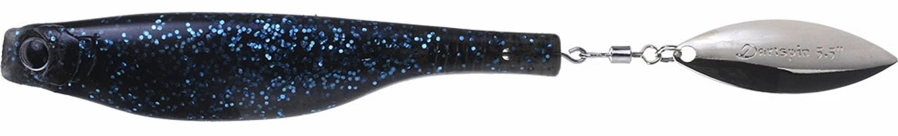 The Hyperlastics Dartspin is a unique bladed softbait that features unmatched toughness and versatility. Brought into existence by Patrick Sebile’s A Band of Anglers, Hyperlastics lures are built from a proprietary Softough soft plastic material that is soft and pliable, yet extremely tough and durable. The Dartspin is Hyperlastics’ first creation, and it certainly doesn’t disappoint! The Softough construction of the Dartspin’s minnow shaped body ensures an enticing swimming action and a wiggling fall, while the willow blade solidly embedded into its tail emits a flash and vibration that drive predatory game fish of all types absolutely mad. The Dartspin’s effectiveness knows no bounds, as it can be rigged in a wide variety of ways to catch all types of both fresh and saltwater game fish including largemouth bass, pike, striped bass, redfish, snook, tarpon, and even tuna! Popular rigging methods include on a jig head, weighted swimbait hook, and nose-hooked with a circle hook. Regardless of what you’re after or how you choose to deploy it, the Hyperlastics Dartspin is a certified fish catcher that belongs in your arsenal.