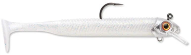 The Storm 360GT Searchbait Swimmer is designed to be fished anywhere by all skill levels. These lures feature a rattling, weighted, lifelike jig head that matches the body perfectly for the most natural presentation possible. The 360GT Searchbait Swimmer jig head features a plastic lip similar to those seen on crankbaits that creates a wider body rolling action and helps the lure easily deflect off of structure. The toe-in boot tail design of these baits ensures the best action no matter the speed.